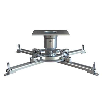 Universal adapter plate fits nearly all projectors up to 50 lb. Single adjustment point facilitates quick image alignment. Convenient design makes flush mounting easy for low-profile installations. Quick-release mechanism offers easy projector access. Extension column connector makes it easy to route cables through a 1.5 extension column or pipe. Pre-assembled design saves installation time. Security hardware supports theft prevention. Color: Silver.